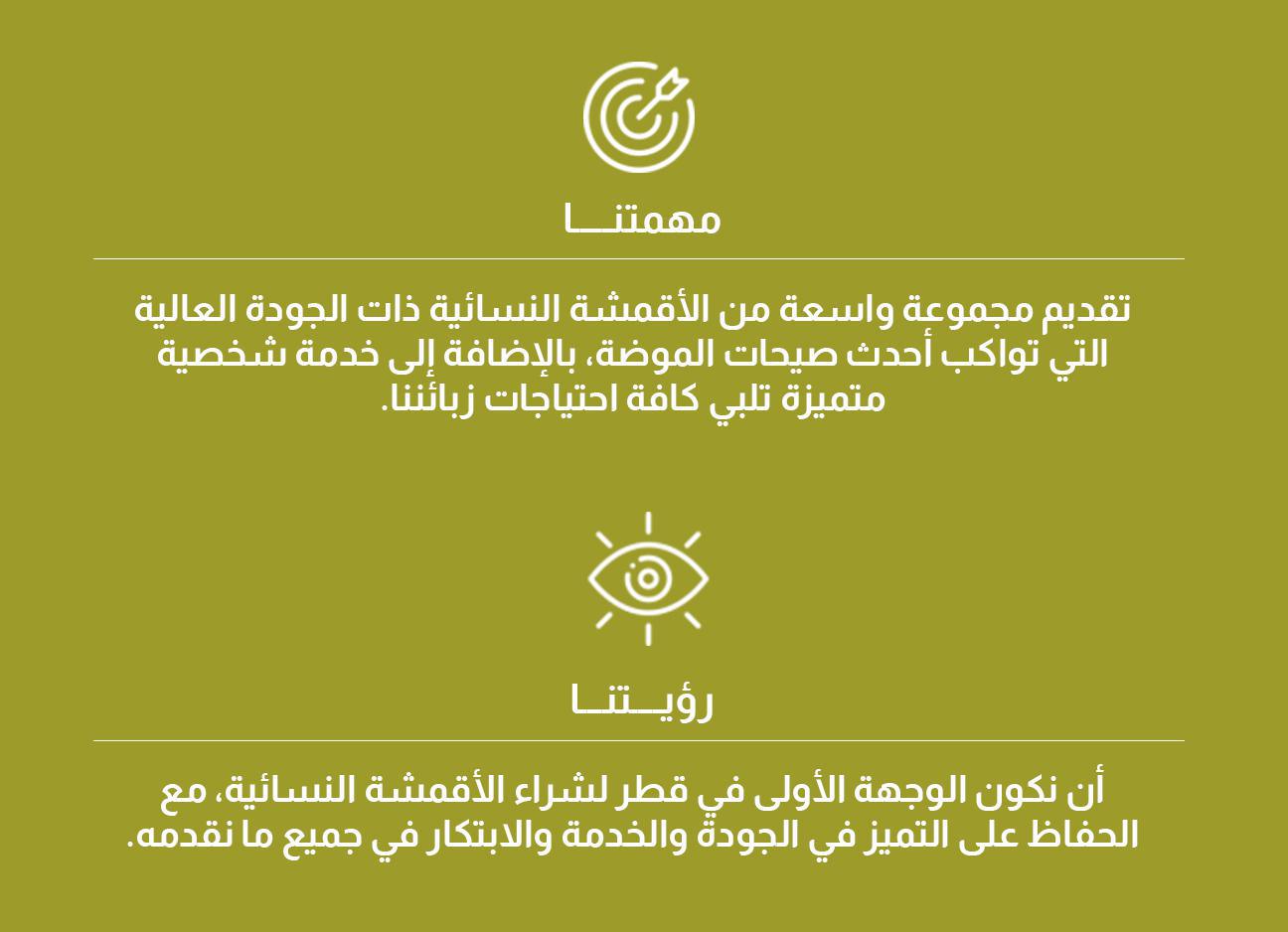 - نقدم مجموعة واسعة من الأقمشة النسائية المختلفة من أنواع وألوان متعددة، تتناسب مع كافة الأذواق والمناسبات. تشمل منتجاتنا الأقمشة الكلاسيكية، الحديثة، وأقمشة المناسبات الخاصة.